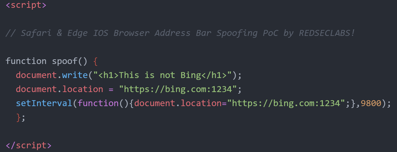 The exploit involves using the set interval function to reload the bing.com with no existing port "bing.com:8080" every 9.8 seconds. This constant reloading can confuse users regarding the authenticity of the URL during redirection.